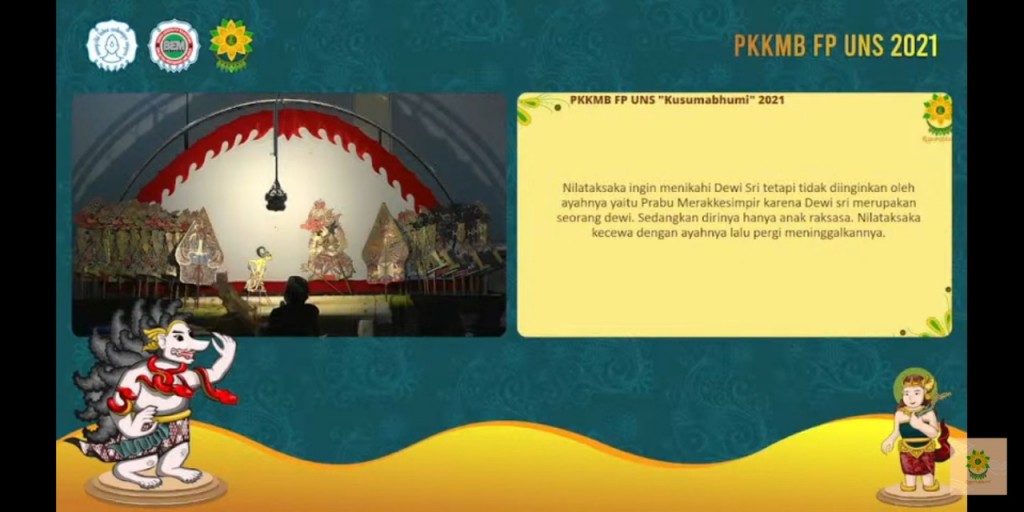 FKIP – Student Activity Unit (UKM) Regional Arts Development Unit (UPKD) Teacher Training and Education Faculty (FKIP) Sebelas Maret University (UNS) Surakarta presented puppets show in a series of PKKMB activities, Faculty of Agriculture (FP) UNS on Sunday (15 /8/2021).