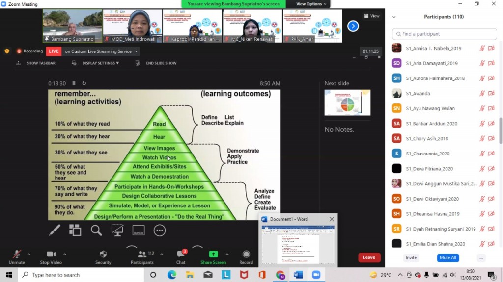 FKIP – The Biology Education Study Program, Faculty of Teacher Training and Education (FKIP) Sebelas Maret University (UNS) Surakarta held a “Workshop on Skill Upgrading in Utilizing Digital-Based Biology Learning Resources” on Friday (13/8/2021). The activity was guided by Dr. Meti Indrowati, M.Sc. by presenting two speakers, namely Dr. Bambang Supriatno, M.Sc. as an expert on biology learning media as well as the Head of the Department of Biology Education at the Indonesian University of Education (UPI) Bandung and Abdul Rizal Adompo, S.T., M.T. as Content IT Manager SEAMOLEC.