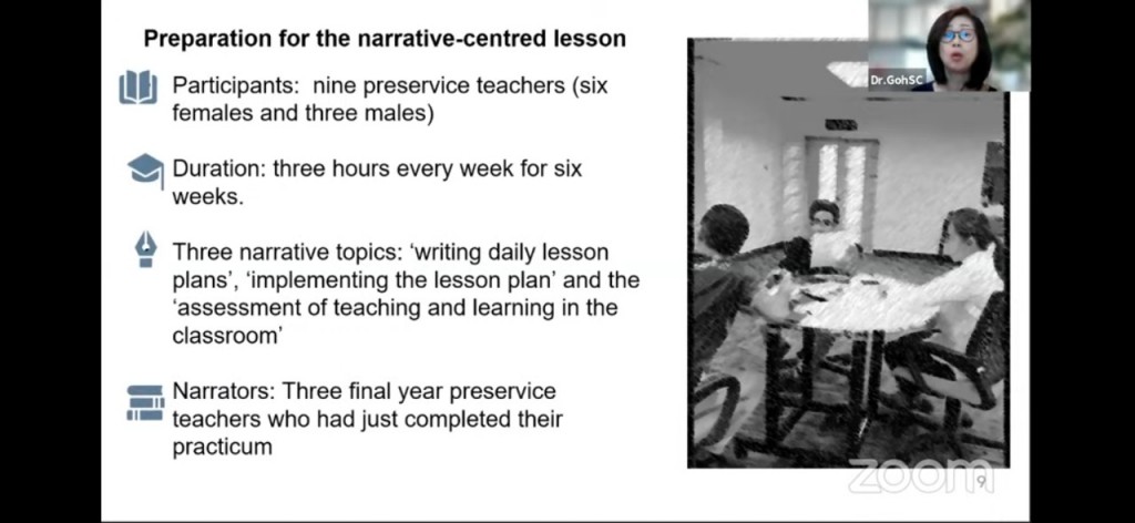 Pemaparan materi pertama disampaikan oleh Prof. Dr. Goh. Ia memaparkan mengenai bagaimana pedagogi naratif bisa menjadi alternatif cara baru mengajar calon guru.