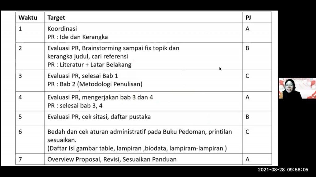 Dr. Rima gave a more detailed explanation of the basic concepts, objectives, types of PKM to how to find ideas, and strengthened what was explained by the previous speaker.
