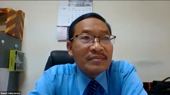 Acara dilanjutkan dengan sambutan dan pembukaan webinar secara resmi oleh Prof. Dr. Slamet Subiyantoro, M.Si., selaku Wakil Dekan Bidang Akademik, Riset, dan Kemahasiswaan FKIP UNS. Dalam sambutannya, ia menjelaskan pentingnya riset bagi dosen.