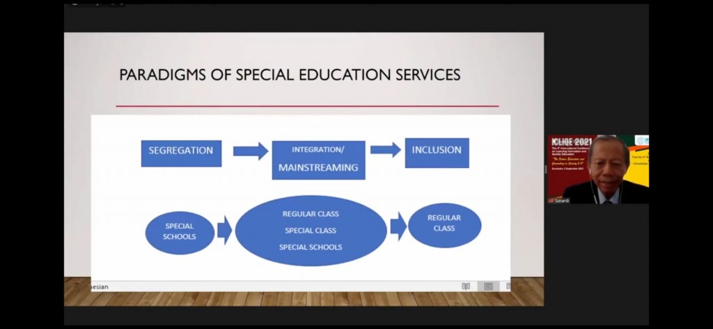 Pemaparan materi selanjutnya mengenai “Inklusivitas Budaya Universitas Studi Kasus di Fakultas Keguruan dan Ilmu Pendidikan Universitas Sebelas Maret” yang disampaikan oleh Prof. Drs. Sunardi, M.Sc., Ph.D. dari UNS. Ia mengawali pemaparannya dengan memberikan gambaran keadaan dunia pendidikan selama era globalisasi industry 5.0 dan society 5.0.