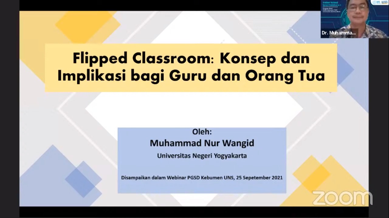 Dr. Suhartono selaku Kepala Prodi PGSD Kebumen FKIP UNS menuturkan bahwa di masa pandemi ini siswa akan lebih banyak belajar secara daring, sebagai konsekuensinya dibutuhkan peran aktif orang tua dan guru dalam mendampingi proses belajar anak. Adapun peran orang tua dalam pendidikan di era yang memungkinkan anak untuk mendapatkan pengetahuan yang berlimpah, cepat, dan mudah adalah dengan membantu dalam penggunaan media teknologi. Sementara itu, guru sebagai mitra dalam belajar harus mendesain kegiatan pembelajaran sehingga siswa memperoleh informasi lebih banyak dibanding waktu yang disediakan.