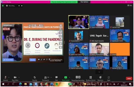 FKIP – Program Studi (Prodi) Magister Teknologi Pendidikan Fakultas Keguruan dan Ilmu Pendidikan (FKIP) Universitas Sebelas Maret (UNS) Surakarta gelar kuliah praktisi bersama Marshall Cavendis Education (MCE), Singapore pada Kamis (9/9/2021) melalui Zoom Cloud Meeting. Kegiatan ini diikuti lebih dari 200 partisipan dari kalangan mahasiswa, guru, dan dosen. Dimoderatori oleh Dr. Arifa Dradjati selaku dosen Prodi S-2 Teknologi Pendidikan. Acara ini menghadirkan pembicara berskala internasional, yakni Dr. Peter Esperanza selaku dosen dari Barstow Community College, Amerika Serikat.