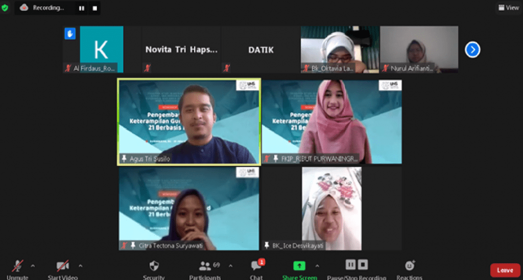 Kesempatan ini direspon oleh grup riset psikoedukasi dan konseling yang diketuai oleh Prof. Dr. Asrowi, M.Pd. menyelenggarakan workshop yang dimaknai sebagai suatu tantangan dan peluang untuk mengembangkan keterampilan abad 21 bagi Konselor. Fokus pengembangan keterampilan abad 21 bagi konselor pada kegiatan ini adalah (4Cs): (critical thinking, communication, collaboration, creativity). “Sebagai seorang konselor abad 21 harus secara aktif dan penuh kemampuan untuk membuat konsep, menerapkan, menganalisis, menyarikan, dan mengamati sebuah masalah yang diperoleh ataupun diciptakan dari pengamatan, pengalaman, komunikasi dan lain sebagainya dengan sistematis. Melakukan komunikasi efektif, menjalin kerjama konstruktif berbagai pihak dan mengoptimalkan ide serta keterampilan daya cipta secara inovatif-novelty.” Kata Prof. Asrowi saat memberikan materi tentang tantangan dan kompetensi guru BK/Konselor masa depan di workshop pengembangan keterampilan abad 21 konselor berbasis Internet of Things (IoT) dengan subjek sasaran guru BK di Kabupaten Sukoharjo dan mahasiswa PPG BK Daljab 1 FKIP UNS selama 4 hari mulai tanggal 26-29 Juli 2021. Internet of Things (IoT) adalah konsep komputasi tentang objek sehari-hari yang terhubung ke internet dan mampu mengidentifikasi diri ke perangkat lain.