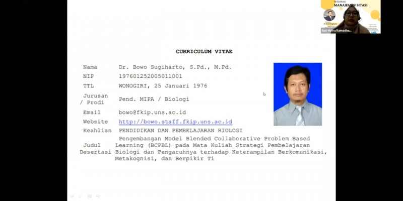 Kegiatan ini menghadirkan narasumber yang kompeten di bidangnya, yaitu Dr. Bowo Sugiharto, S.Pd., M.Pd. selaku Kepala Program Studi S2 Pendidikan Biologi. Sebelum menyampaikan materi, Bowo menyampaikan tujuan dari adanya kegiatan ini.