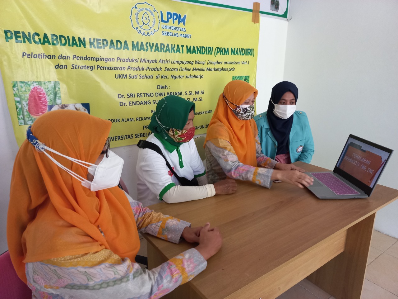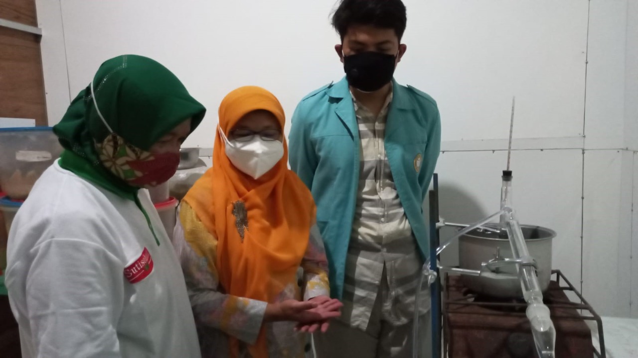FKIP – Dosen Program Studi (Prodi) Pendidikan Kimia Fakultas Keguruan dan Ilmu Pendidikan (FKIP) Universitas Sebelas Maret (UNS) Surakarta yang tergabung dalam Research Group Produk Alam, Rekayasa Molekul, dan Pembelajaran Kimia melaksanakan Pelatihan dan Pendampingan Produksi Minyak Atsiri Lempuyang Wangi (Zingiber aromaticum Val.) dan Strategi Pemasaran Produk-Produk Secara Online Melalui Marketplace pada UKM Suti Sehati di Kec. Nguter Sukoharjo.