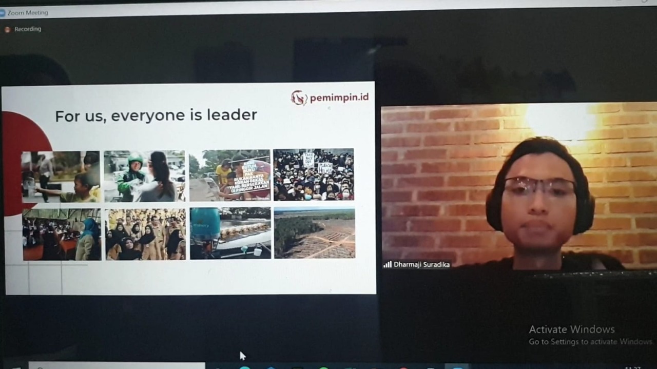 The second speaker was Dharmaji Suradika. He is the CEO of Pemimpin.id. He explained the material entitled “Training Leadership: Digital Leadership in a Disruptive Era”. In his presentation, he explained that to start becoming a leader, one must understand self-leadership.