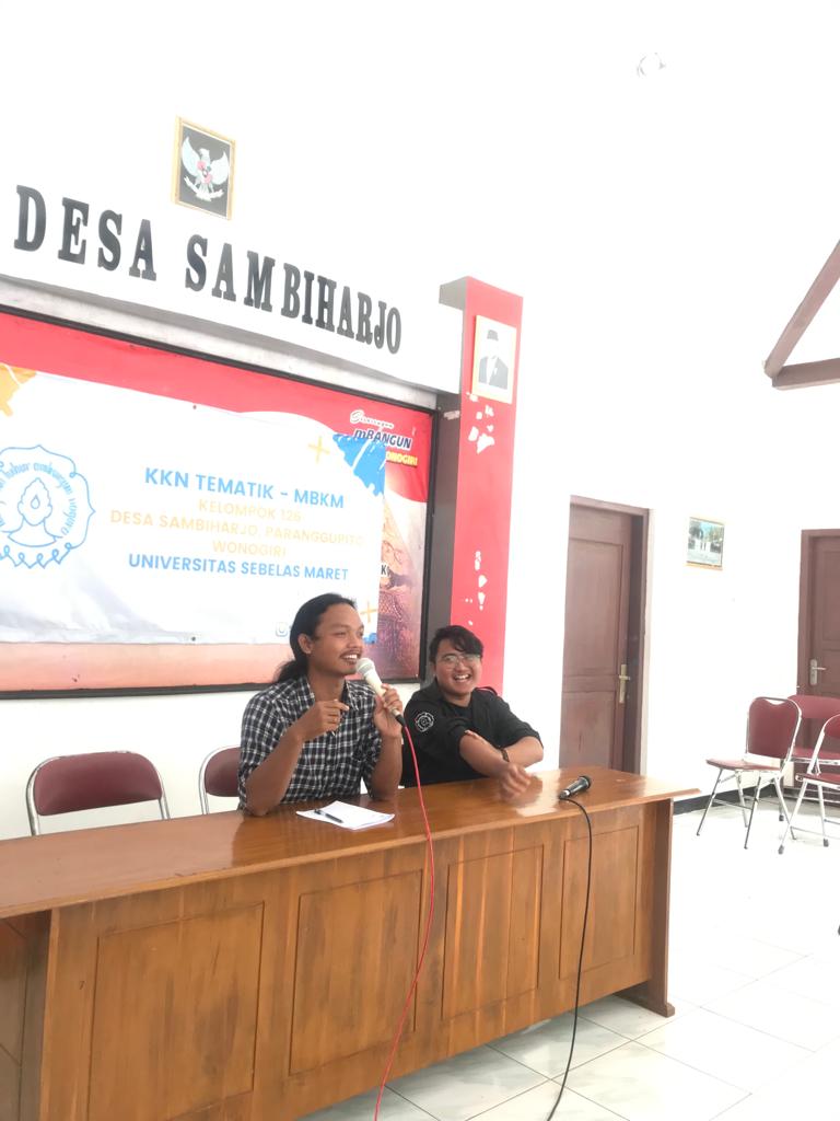 FKIP – Mahasiswa Kuliah Kerja Nyata (KKN) Universitas Sebelas Maret (UNS) Surakarta menyelenggarakan kegiatan berbagi motivasi dan sosialisasi beasiswa Kartu Indonesia Pintar (KIP) secara langsung di Balai Desa Sambiharjo, Kecamatan Paranggupito, Kabupaten Wonogiri pada Sabtu (19/2/2022).