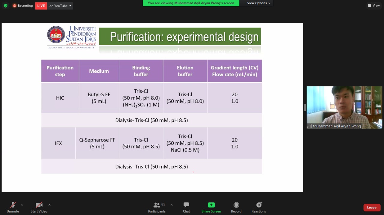 Then, the next visiting lecturer event continued with the presentation of material on purification enzymes. According to Prof. Aqil, enzyme or protein purification is defined as a process carried out to isolate one or more proteins from a complex mixture. If the isolation of this protein is not carried out, the toxic content of penicillin can occur.