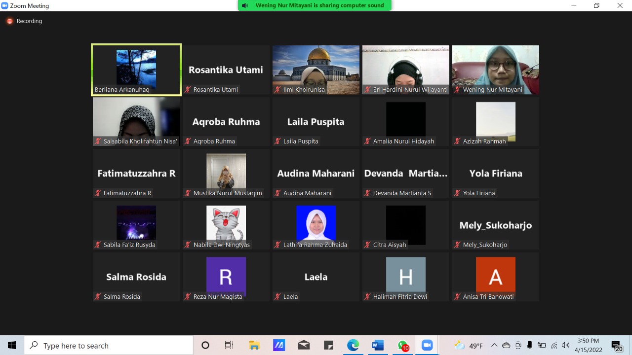 FKIP – Center for Islamic Activities (SKI) Faculty of Teacher Training and Education (FKIP) Universitas Sebelas March (UNS) Surakarta held the Grand Opening of Muslimah Studies #1 on Friday (15/4/2022). Themed “Lailatul Qadar: Why Should We Prepare For It?”, the activity was held online through the Zoom Meeting application.