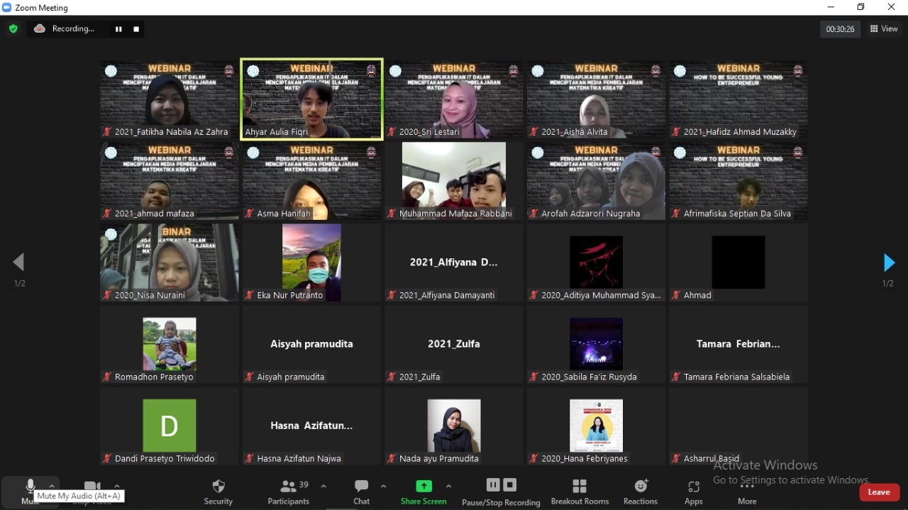 In his speech, Riki Andriatna, S.Pd., M.Pd. as the Representative of the Mathematics Education Study Program and the Advisor for Himmadika FKIP UNS said that as prospective educators, Mathematics Education students must have the ability to create innovative and interactive learning media. He hopes that this webinar can improve the ability of Mathematics Education students in creating these learning media.