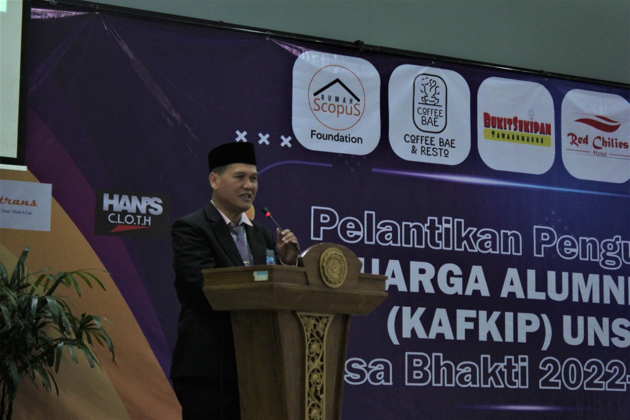In his speech, Prof. Ayu conveyed her congratulations on the inauguration of the FKIP KA Daily Manager for the 2022/2027 term of service. He also invited FKIP UNS Alumni to help realize Advanced Indonesia.