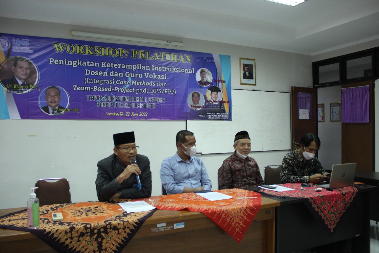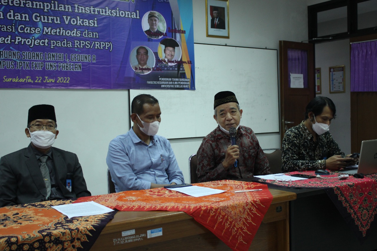 FKIP – Program Studi (Prodi) Pendidikan Teknik Bangunan (PTB) Fakultas Keguruan dan Ilmu Pendidikan (FKIP) Universitas Sebelas Maret (UNS) Surakarta mengadakan lokakarya Peningkatan Keterampilan Instruksional Dosen dan Guru Vokasi dengan tema “Integrasi Case Methods dan Team-Based-Project pada RPS/RPP”. Kegiatan berlangsung secara hybrid bertempat di Ruang Sidang Gedung A Pendidikan Teknik Bangunan Kampus V FKIP UNS dan secara daring melalui Zoom Meeting pada Rabu (22/6/2022).