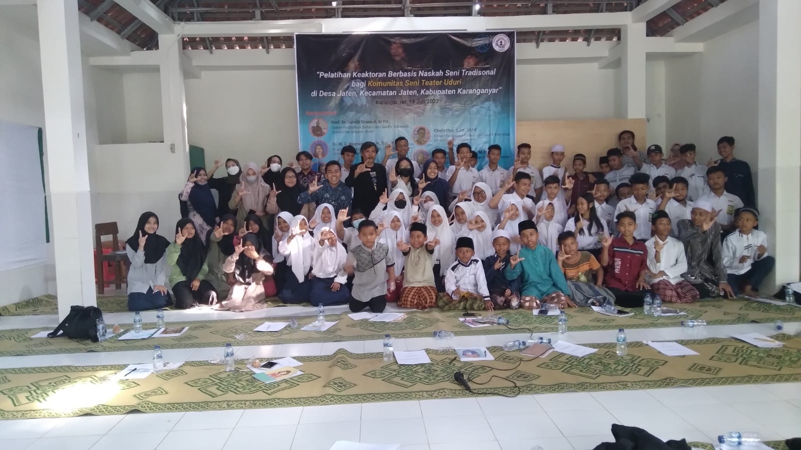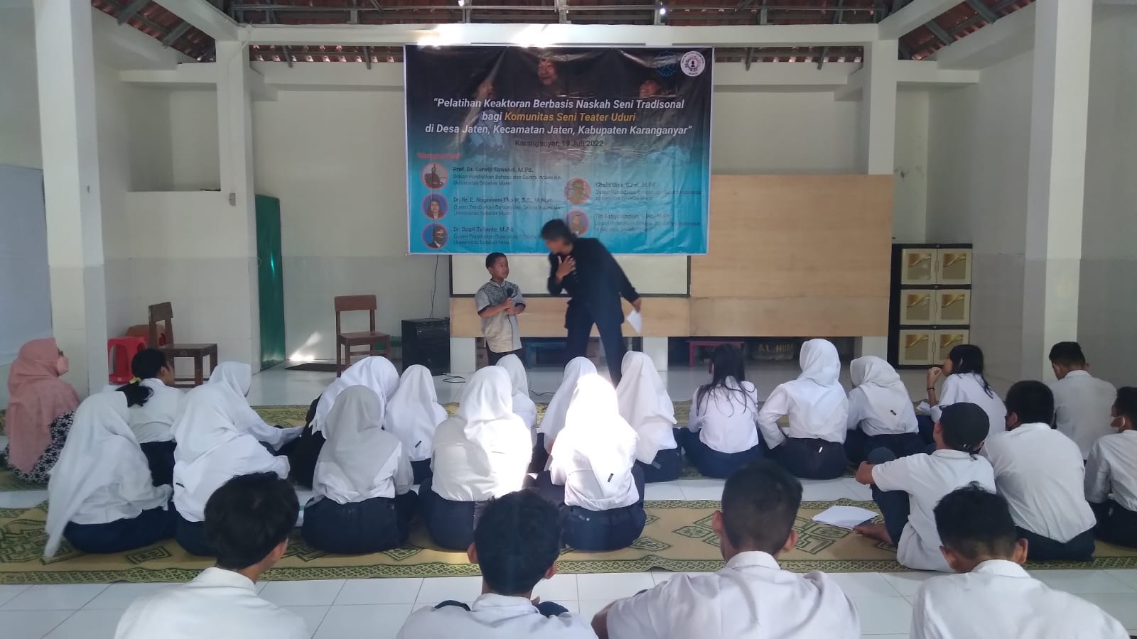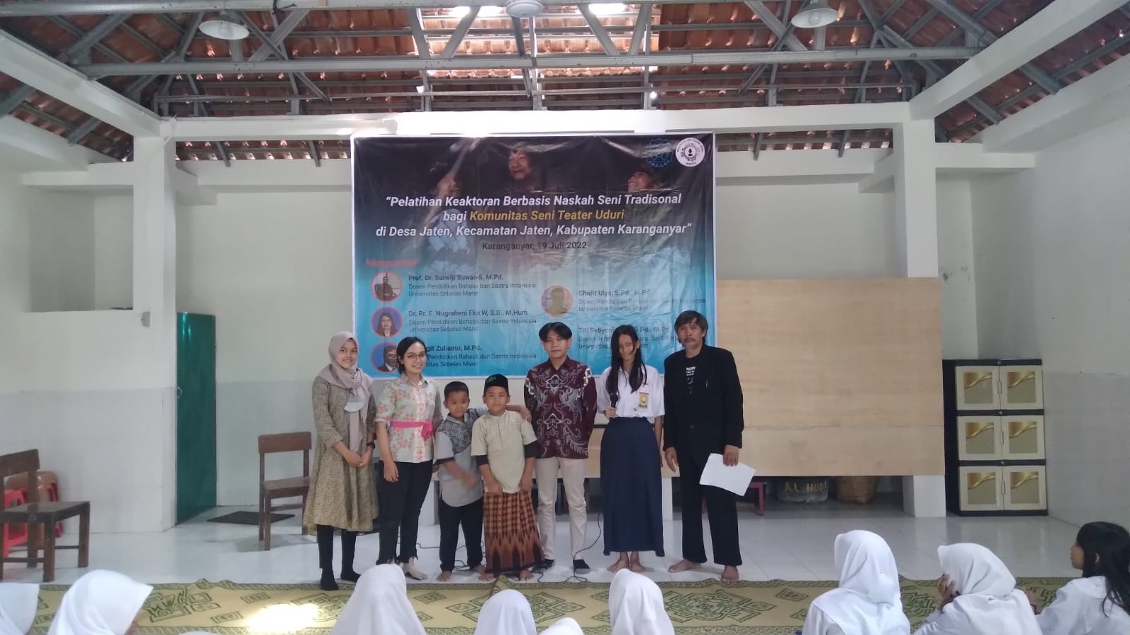 FKIP – The Community Service Team of the Indonesian Language and Literature Education Study Program (PBSI) Faculty of Teacher Training and Education (FKIP) Sebelas Maret University (UNS) Surakarta held an Acting Training Based on Traditional Art Scripts for the Uduri Theater Arts Community at the Village Da’wah Building Jaten, Jaten District, Karanganyar Regency on Tuesday (19/7/2022).