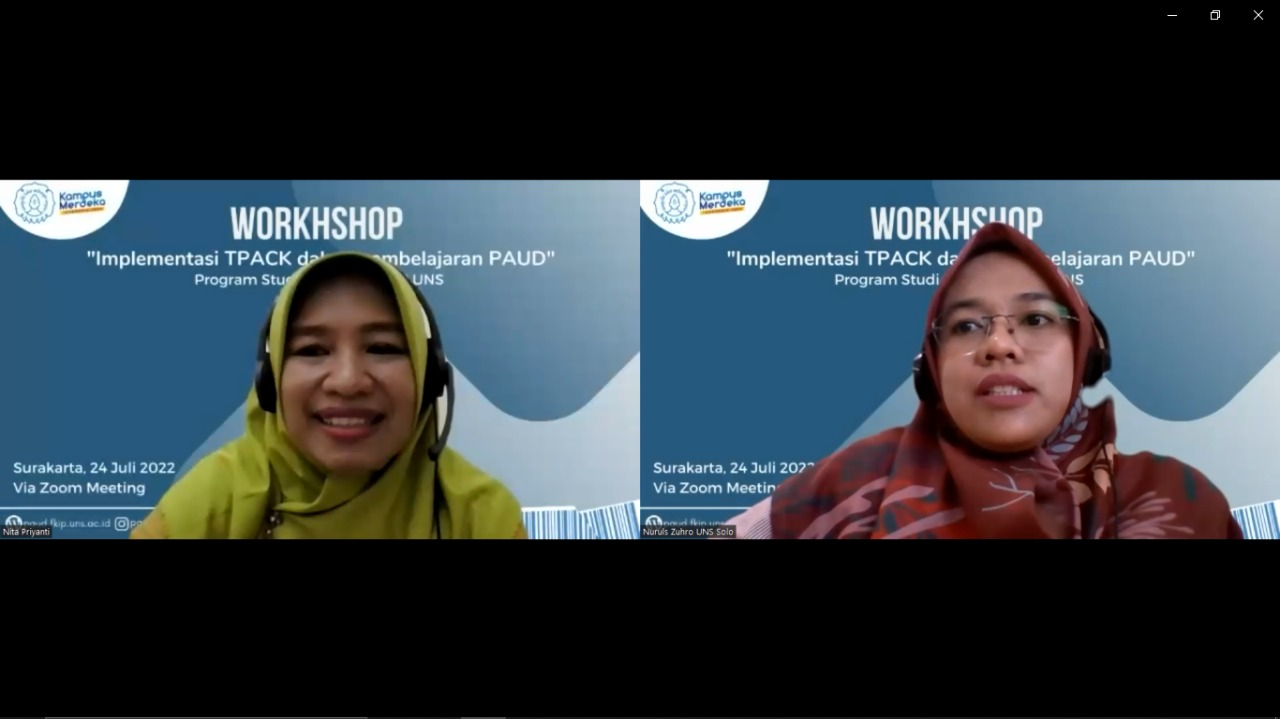 FKIP – Early Childhood Education Teacher Education (PG PAUD) Teacher Training and Education Faculty (FKIP) Sebelas Maret University (UNS) Surakarta held a workshop with the theme “Implementation of TPACK in PAUD Learning”. This event was held online through Zoom Meeting and the PG-PAUD FKIP UNS Youtube channel on Sunday (24/6/2022).