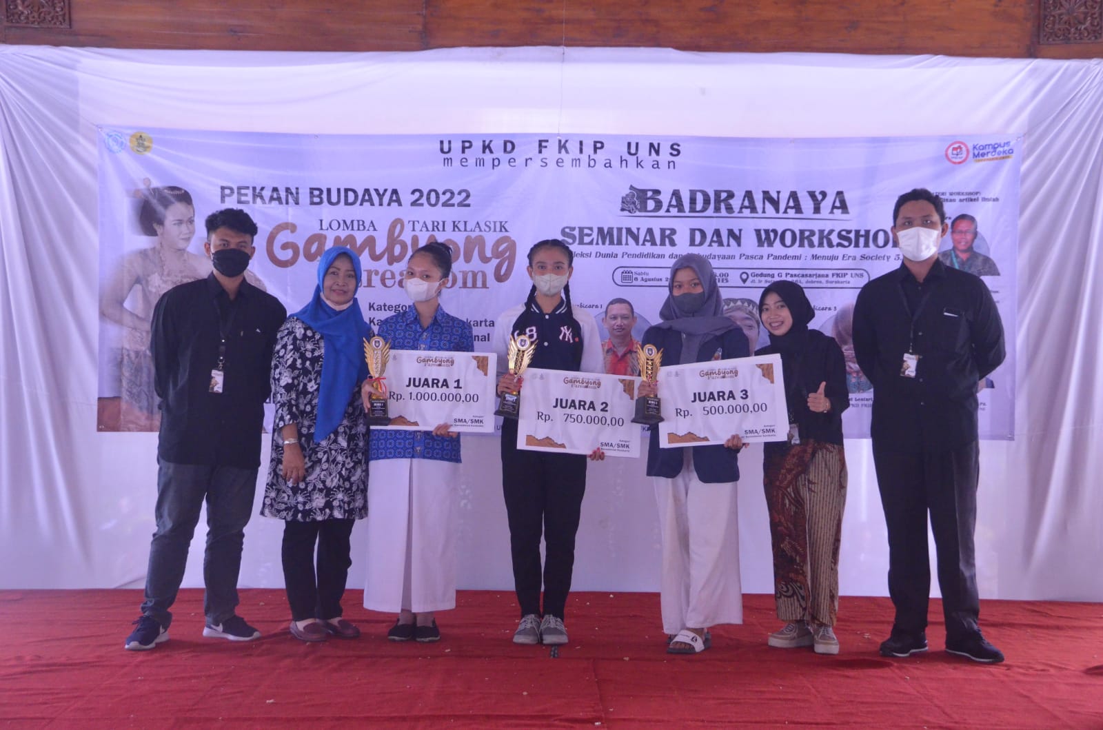 The winners of the student/general category were Semarak Candra Kirana, the Traditional Arts Coordinating Board (BKKT) UNS, and the Surakarta Style Javanese Arts Unit (UKJGS) UGM. While the categories of SMA/K students are SMAN 3 Surakarta, SMAN 1 Kartasura, and SMAN 1 Karanganyar.