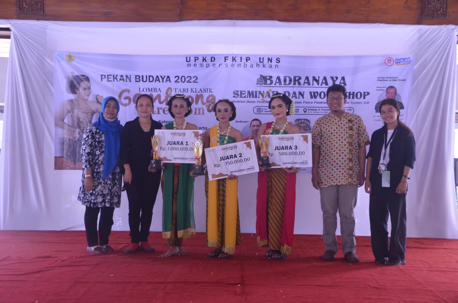 The winners of the student/general category were Semarak Candra Kirana, the Traditional Arts Coordinating Board (BKKT) UNS, and the Surakarta Style Javanese Arts Unit (UKJGS) UGM. While the categories of SMA/K students are SMAN 3 Surakarta, SMAN 1 Kartasura, and SMAN 1 Karanganyar.