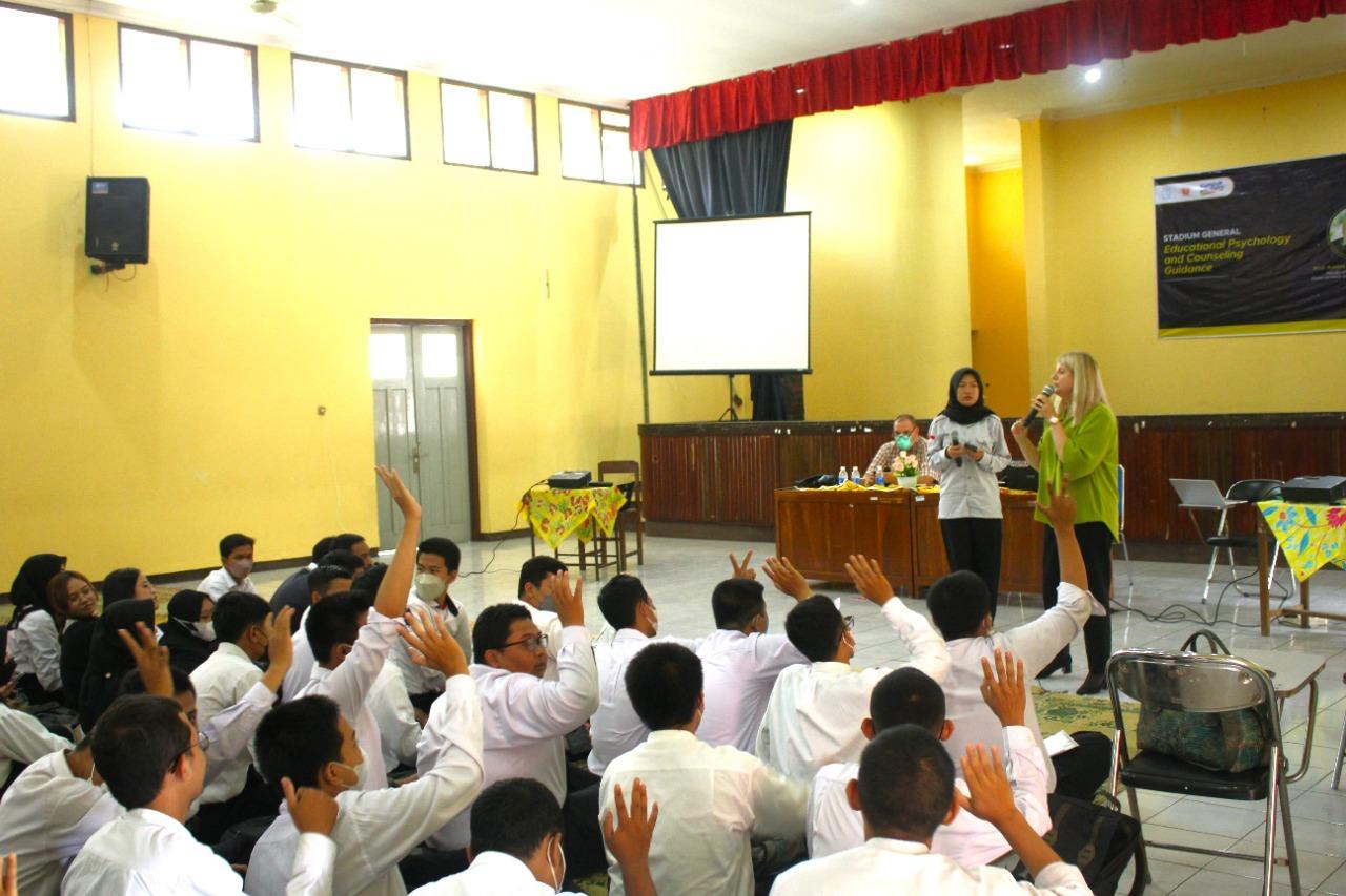 Narasumber utama dalam kegiatan perkuliahan tersebut adalah narasasumber Assoc. Prof. Aurora Adina Colomeischi dari Fakultas Ilmu Pendidikan Universitas Stefan cel Mare, Suceava, Rumania. Assoc. Prof. Aurora disamping memberikan materi kuliah umum tentang Educational Psychology and Counceling Guidance juga turut mempromosikan atau memperhatikan tentang Kesehatan mental baik dari murid maupun guru.