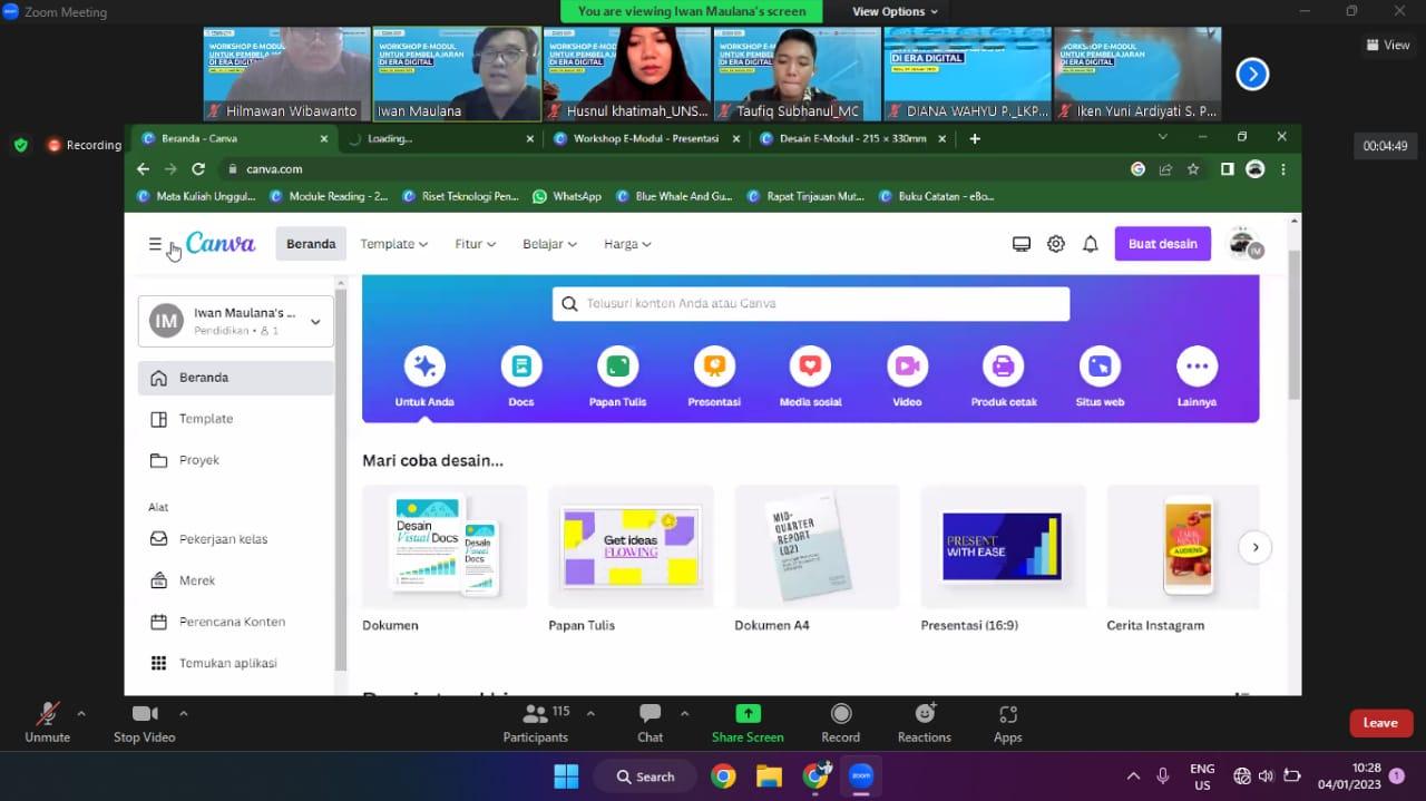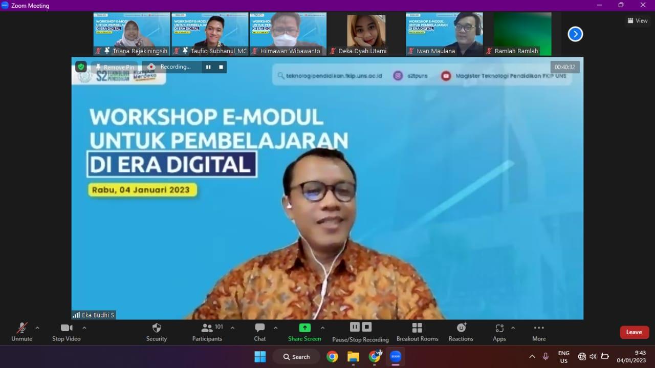 FKIP – Educational Technology Master’s Degree Study Program, Faculty of Teacher Training and Education (FKIP) Sebelas Maret University (UNS) Surakarta held an online workshop on Wednesday (4/1/2022). This activity is titled “E-Module Workshop for Learning in the Digital Age.”
