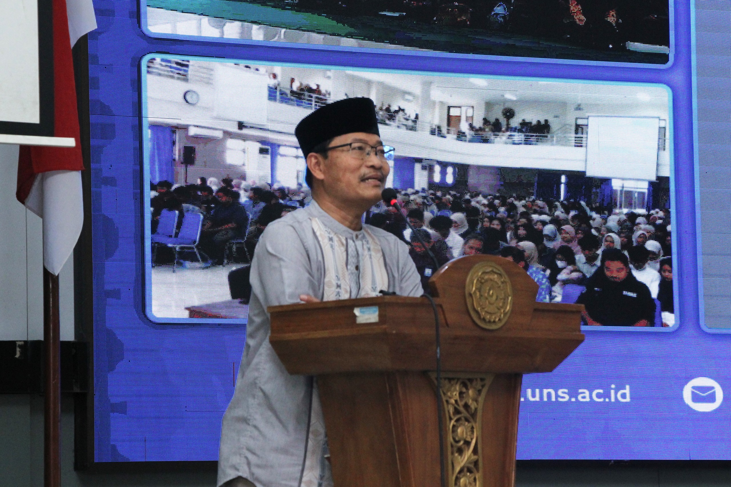 Kegiatan dibuka dengan sambutan dari Wakil Dekan Bidang Kemahasiswaan dan Alumni FKIP UNS, Prof. Slamet Subiantoro, M.Si. Dalam sambutannya, menyampaikan bahwa kegiatan studium general ini menjadi ruang refleksi sekaligus penguatan nilai spiritual bagi mahasiswa sebagai calon pendidik.