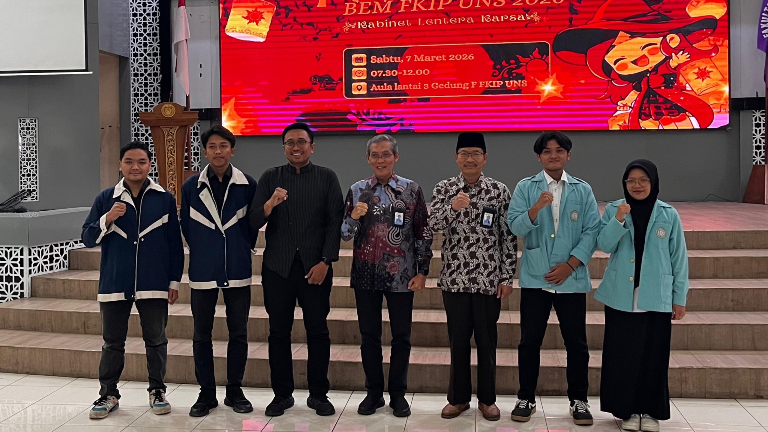 FKIP UNS — Fakultas Keguruan dan Ilmu Pendidikan (FKIP) Universitas Sebelas Maret (UNS) secara resmi melantik 181 pengurus Badan Eksekutif Mahasiswa (BEM) FKIP UNS dalam sebuah acara yang berlangsung di Aula Gedung F FKIP UNS (7/3/26). Kegiatan pelantikan ini menjadi salah satu momentum penting untuk memperkuat peran organisasi kemahasiswaan sebagai wadah pembelajaran kepemimpinan, kerja sama, serta pengembangan karakter mahasiswa.