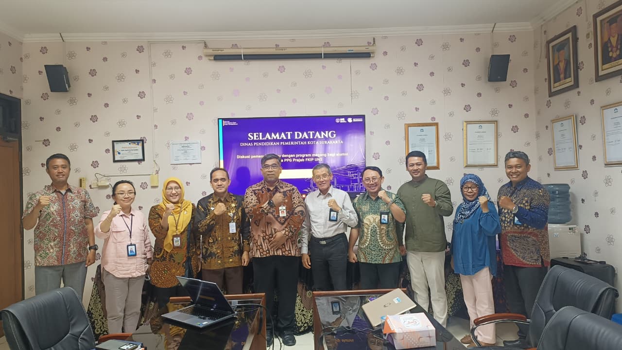 FKIP UNS – Fakultas Keguruan dan Ilmu Pendidikan (FKIP) Universitas Sebelas Maret (UNS) menerima kunjungan Dinas Pendidikan Pemerintah Kota Surakarta dalam rangka diskusi pemenuhan kebutuhan guru melalui program magang bagi alumni mahasiswa PPG Prajabatan FKIP UNS. Kegiatan ini dilaksanakan pada Rabu (2/4/2026) di Ruang Sidang Lantai 2 Gedung F FKIP UNS, Surakarta.