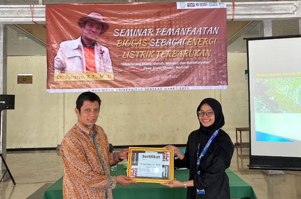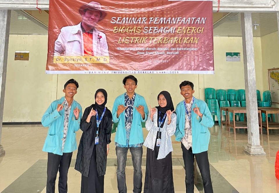 FKIP UNS– Mahasiswa Pendidikan Teknik Bangunan (PTB) Fakultas Keguruan dan Ilmu Pendidikan (FKIP) Universitas Sebelas Maret (UNS) Surakarta yang tergabung dalam Program Merdeka Belajar Kampus Merdeka (MBKM) melaksanakan kegiatan bertajuk SMART TECHNO: Seminar Pengelolaan Biogas Menjadi Energi Terbarukan (28/7/25) di Desa Sruni, Kecamatan Musuk, Kabupaten Boyolali. Kegiatan ini bertujuan untuk mendorong masyarakat desa dalam mengoptimalkan