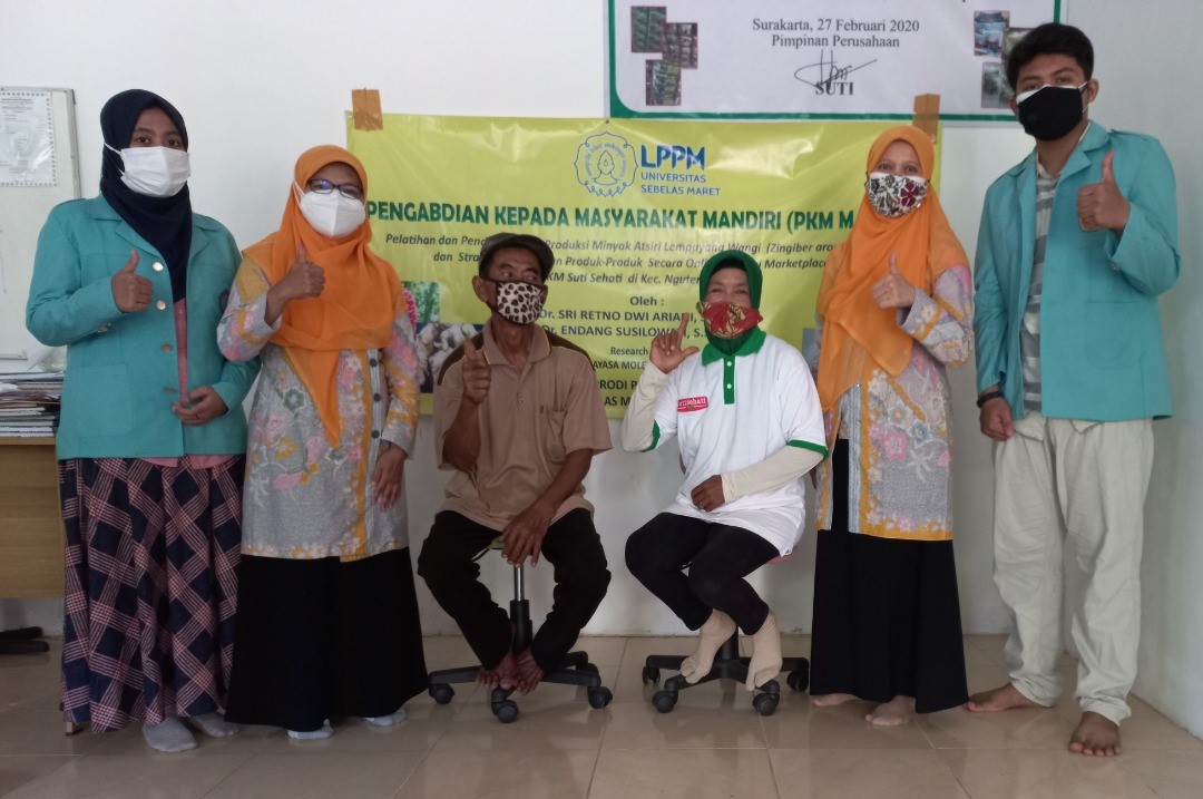 FKIP – Dosen Program Studi (Prodi) Pendidikan Kimia Fakultas Keguruan dan Ilmu Pendidikan (FKIP) Universitas Sebelas Maret (UNS) Surakarta yang tergabung dalam Research Group Produk Alam, Rekayasa Molekul, dan Pembelajaran Kimia melaksanakan Pelatihan dan Pendampingan Produksi Minyak Atsiri Lempuyang Wangi (Zingiber aromaticum Val.) dan Strategi Pemasaran Produk-Produk Secara Online Melalui Marketplace pada UKM Suti Sehati