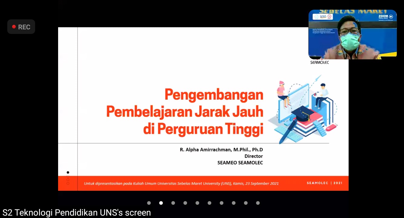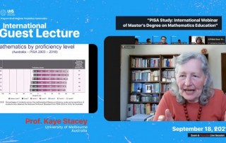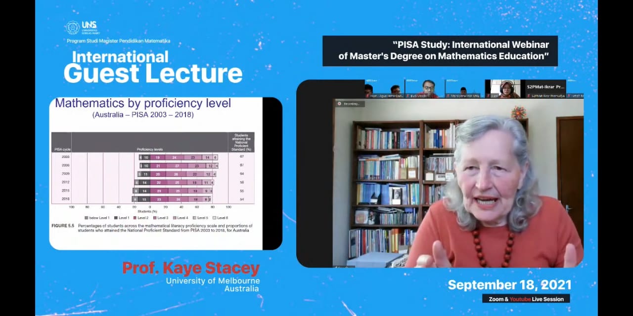 FKIP – Program Studi (Prodi) Magister Pendidikan Matematika Fakultas Keguruan dan Ilmu Pendidikan (FKIP) Universitas Sebelas Maret menggelar International Guest Lecture dengan tema “PISA Studi: International Webinar od Master’s Degree on Mathematics Education” melalui Zoom Meeting dan kanal youtube resmi Magister Pendidikan Matematika UNS pada Sabtu (18/9/2021). Acara yang dimoderatori oleh Aprilia Nur Utami menghadirkan