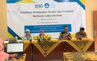 FKIP - The Eduscape Research Group from the Sociology Anthropology Education Study Program, Faculty of Teacher Training and Education (FKIP) Sebelas Maret University (UNS) Surakarta in partnership with the Sociology Subject Teacher Conference (MGMP) Surakarta City held a community service activity with the theme Module Preparation Training Laboratory-based Sociology Teaching. The training was held offline on