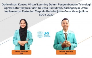 FKIP – Mahasiswa Pendidikan Fisika Fakultas Keguruan dan Ilmu Pendidikan (FKIP) Universitas Sebelas Maret (UNS) Surakarta meraih juara 3 pada ajang Nasional Essay Competition Science Week UNS 2021. Kusnul Khotimah, mahasiswa Pendidikan Fisika 2019 bersama rekannya Safrudin Musthofa, mahasiswa Penyuluhan Komunikasi Pertanian Fakultas Pertanian 2019 mengusulkan gagasan Konsep Virtual Learning dalam Pengembangan Agrowisata “Javanis Park”