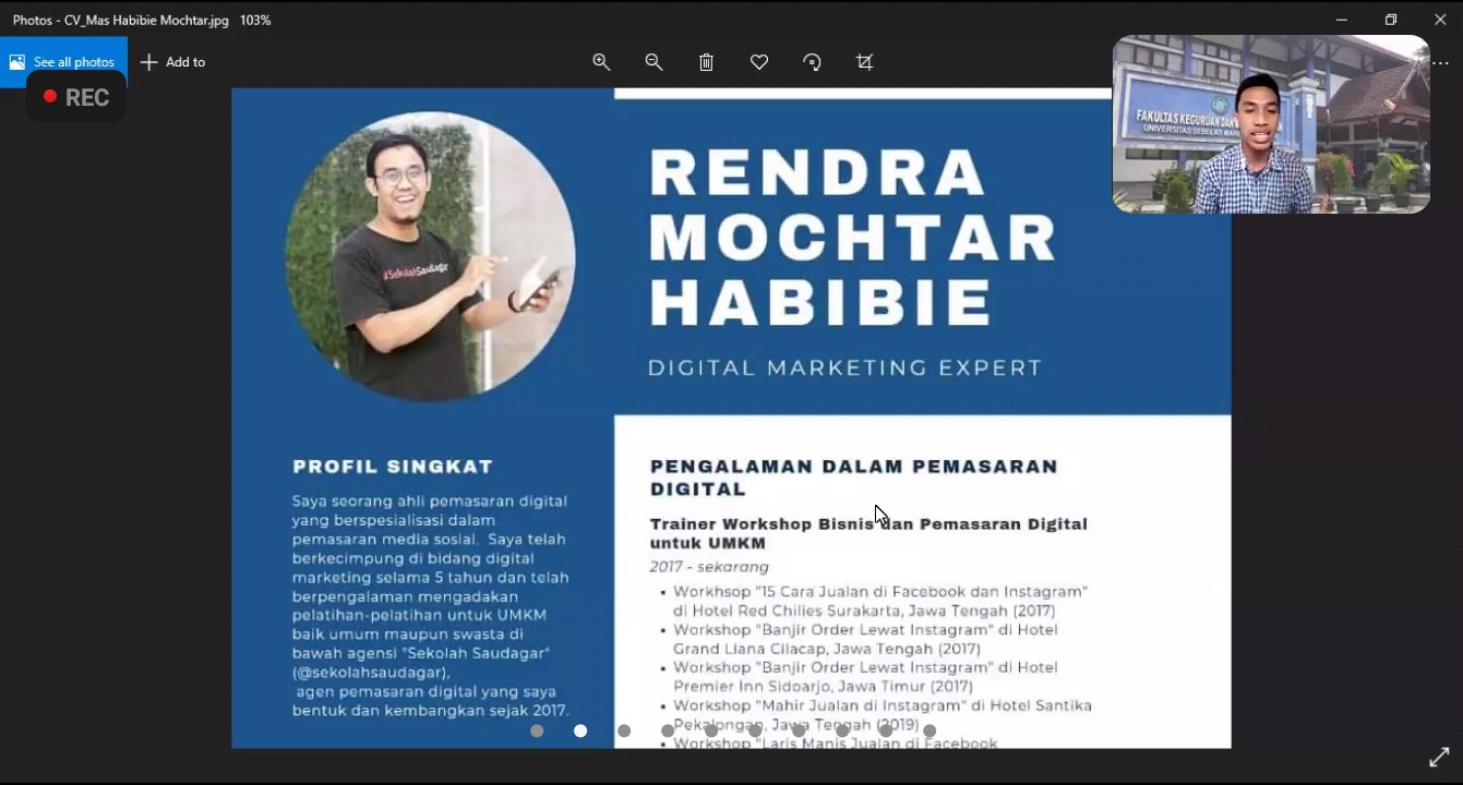 FKIP – Program Studi (Prodi) Magister Teknologi Pendidikan Fakultas Keguruan dan Ilmu Pendidikan (FKIP) Universitas Sebelas Maret (UNS) Surakarta gelar kuliah praktisi bersama Marshall Cavendis Education (MCE), Singapore pada Kamis (9/9/2021) melalui Zoom Cloud Meeting. Kegiatan ini diikuti lebih dari 200 partisipan dari kalangan mahasiswa, guru, dan dosen. Dimoderatori oleh Dr. Arifa Dradjati selaku dosen